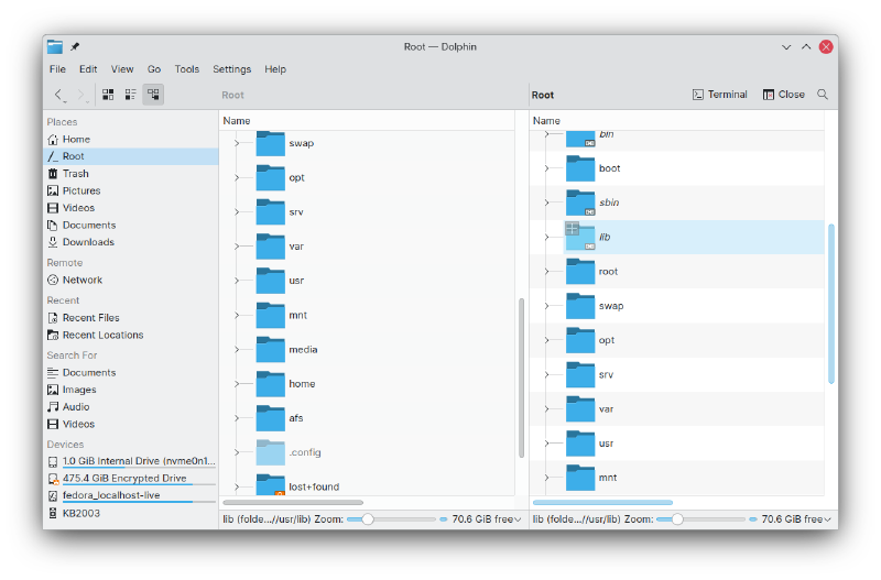 All Breeze applications received a significant visual redesign in their frames; we no longer have all views contained in a blue frame, but rather they will always extend to the window borders or be separated with other elements by a single-pixel line. This builds on top of hundred of Breeze style improvements that have been implemented in the latest versions of Plasma 5.
