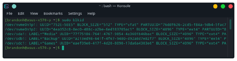 There are two ways to do this: through a GUI disk manager on your system or through the terminal. I recommend using the terminal, but it’s always good to double-check on a disk manager such as Disks, KDE Partition Manager, or GParted.