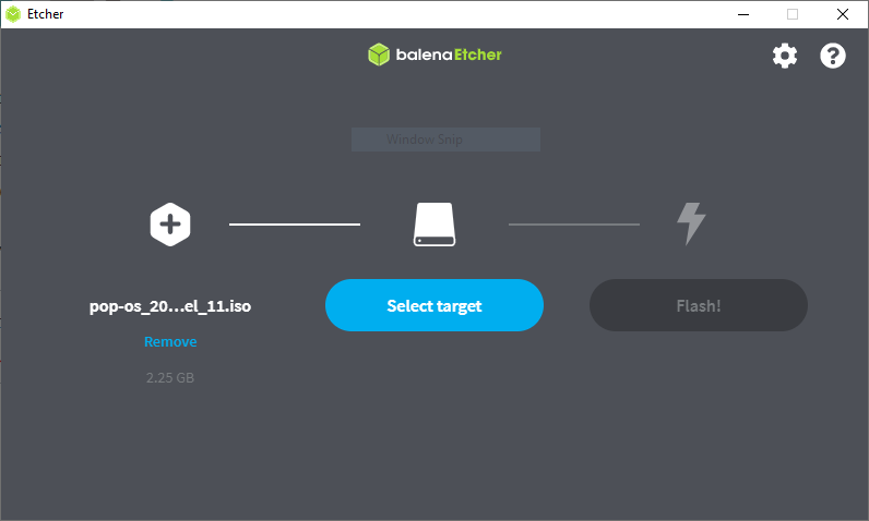 Once Etcher is installed, select the ISO file from the directory that you downloaded it. Insert a blank USB with at least 4gb of free space. Click on ‘Select target’ and pick the USB drive you’d like to use to install Pop!_OS.