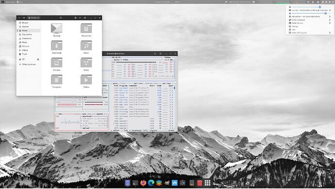 Distro: EndeavourOS DE: GNOME 40 Shell: Blur my Shell, UI Improvements, User Themes Panel: Clipboard Indicator, Extension List, OpenWeather, Places, Screenshot Tool, Sound Input & Output Device Chooser, system-monitor, Removable Drive Menu, krypto, GSConnect, Applications Menu Dock: gnome-shell-extension-dash-to-dock-gnome40-git GTK Theme: Fluent-gtk-theme Icon Theme: Flatery-icon-theme Wallpaper: adventure-alpine