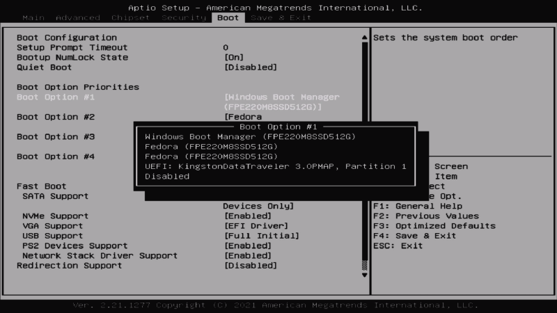 Do note that Secure Boot is a security feature, and disabling it may leave your system vulnerable. It is possible to install Fedora with Secure Boot. However, this process may not work because it’s hardware-dependent and involves certificates. Also, Secure Boot may prevent the system from booting if you run a custom kernel or mess with Grub.