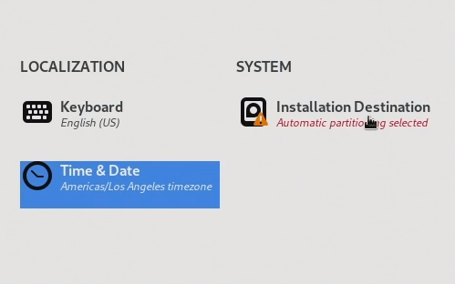 Once on the Fedora USB, boot the installer and select “Installation Destination.”