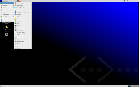 Network Security Toolkit is a distro that can be used as both a server and a graphical system. When used as a graphical system, it uses the MATE desktop environment. It comes with a boatload of preinstalled network and security tools, including tools like Wireshark and “Angry IP Scanner”. It also has a built-in web interface that you can use to manage the system, including things like running a virus scan. Several functions in the web interface are broken out of the box, but that could also be because I didn’t set this up properly; I just opened the web interface and started playing around.