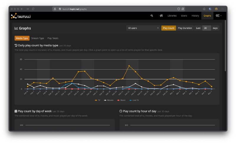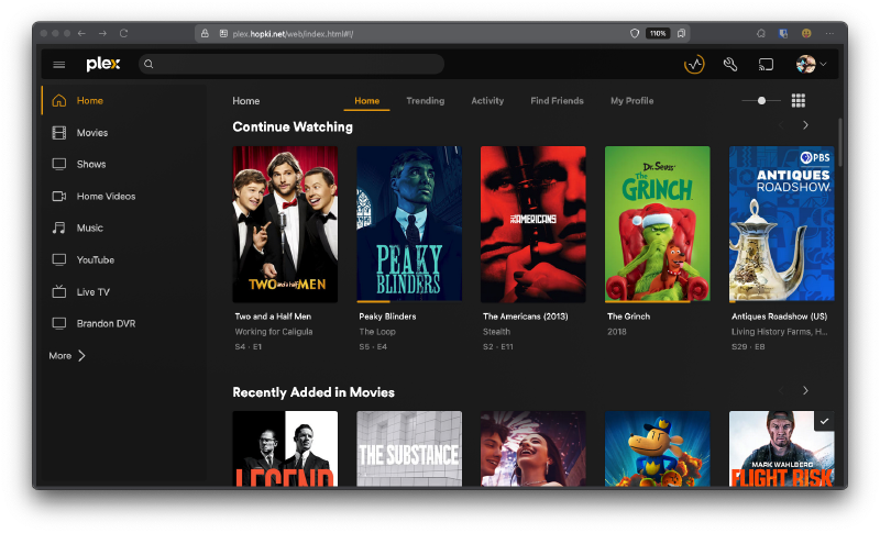 Plex is my main media streaming platform. I have quite a few family members using it and Plex has support for more platforms and easier login capabilities. I’ve also recent setup a TV tuner and it has been working great. Another reason why I use Plex is the support for 3rd party tools such as Tautulli that we will get into below.