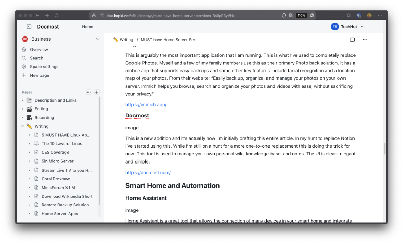 This is a new addition and it’s actually how I’m initially drafting this entire article. In my hunt to replace Notion I’ve started using this. While I’m still on a hunt for a more one-to-one replacement this is doing the trick for now. This tool is used to manage your own personal wiki, knowledge base, and notes. The UI is clean, elegant, and simple.