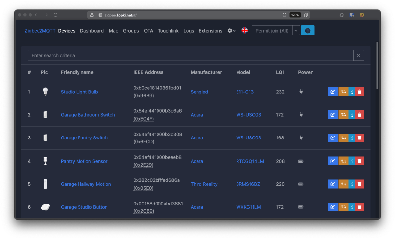 I was originally using this with Home Assistant as an add-on, but I’ve noticed it to be way more reliable if it is separated out. Zigbee2MQTT supports various Zigbee adapters and a bunch of devices.