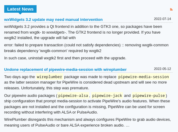 A TUI installer is being worked on, but it’s not finished as of today and is still in the experimental stages, and Arch still doesn’t hold your hand during regular usage. Occasionally, there will be an update that requires manual intervention during the update to fix something. In fact, most of the “Latest News” posts on the Arch Linux homepage tell users they need to intervene to fix an update manually.
